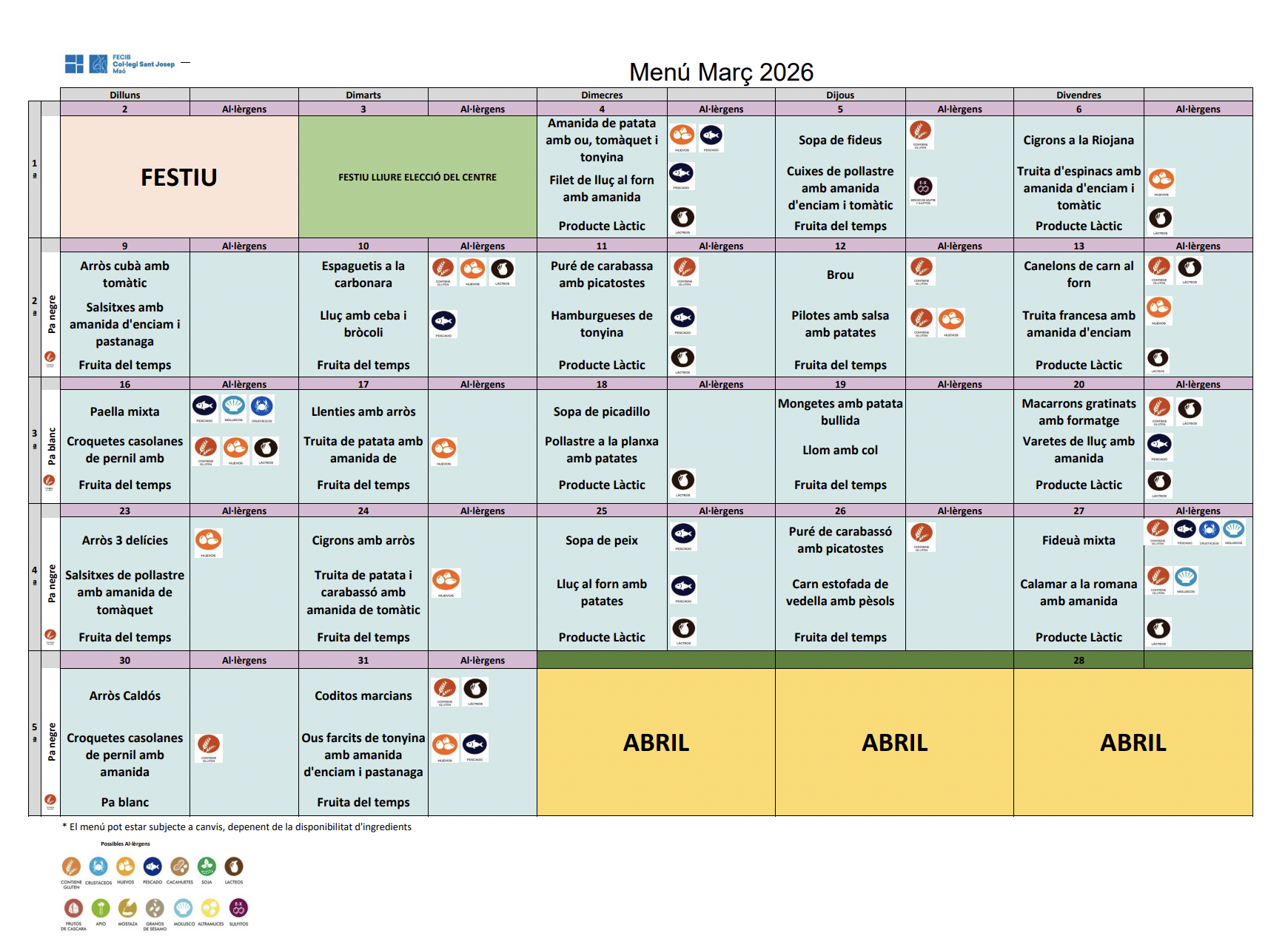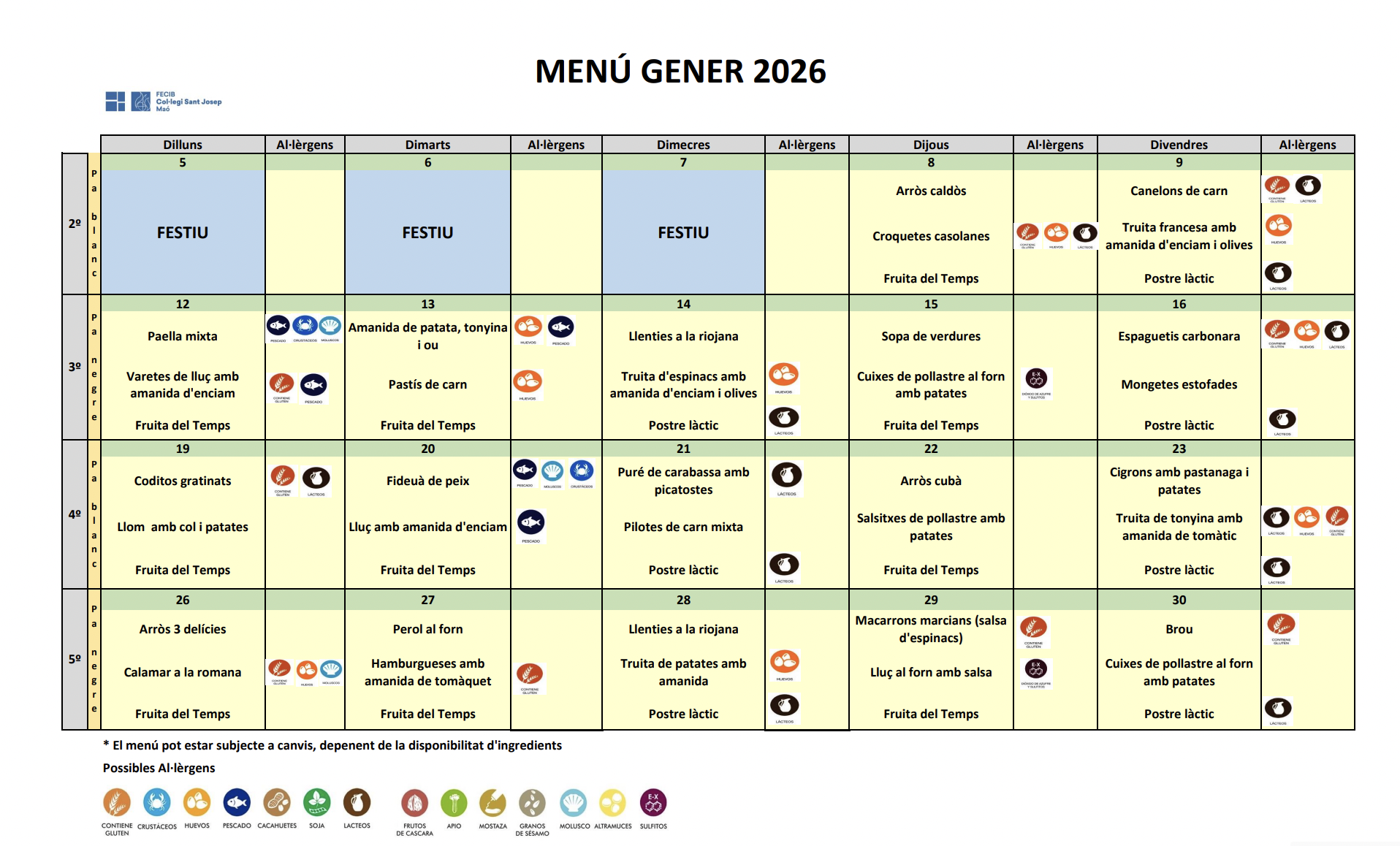 A continuació podreu consultar i descarregar-vos els menús del mes en curs.